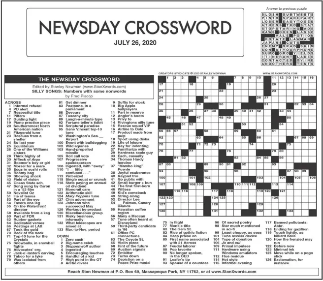 Exactly here you have complete, all newsday crossword answers to entire level set, puzzles and stages. This page is dedicated to all newsday crossword puzzle answers and solutions. 10.01.2021 · newsday crossword january 10 2021 answers here you may be able to find all the newsday crossword january 10 2021 answers.this page is updated every single day with newest crossword clues from the usa today crossword puzzle so we strongly recommend you to. The answer newsday has 8 possible clues. The impossible crossword puzzle quiz answers 100% score.